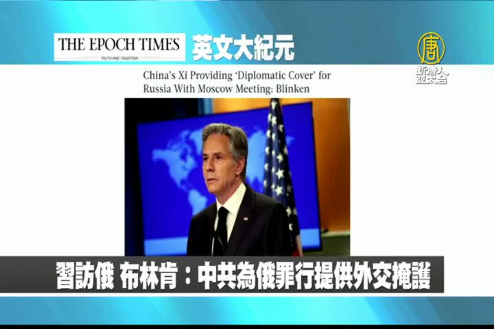 【新唐人亞太台 2023 年 03 月 21 日訊】首先來看到美國大紀元英文版報導:習近平訪問俄羅斯,布林肯表示,中共為俄國侵略 罪行提供外交掩護。