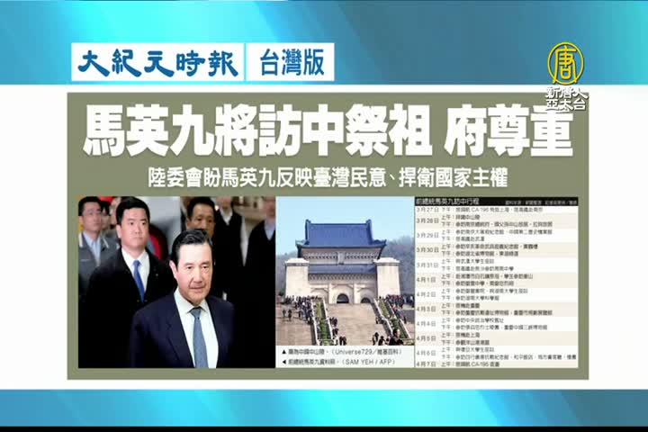 【新唐人亞太台 2023 年 03 月 21 日訊】接著看到大紀元時報台灣版報導:前總統馬英九將赴大陸祭祖,中華民國總統府表示尊重,但期盼,他能向對岸展現台灣民主自由。