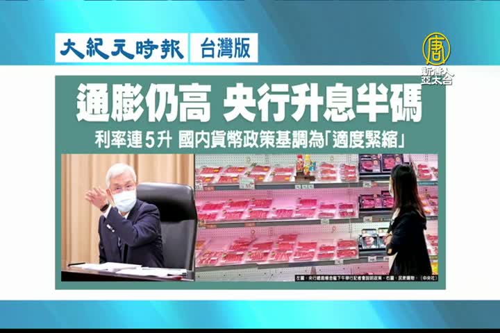 【新唐人亞太台 2023 年 03 月 24 日訊】接著看到大紀元時報台灣版報導:通膨仍高央行升息半碼,國內貨幣政策基調為「適度緊縮」。