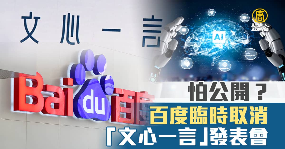 【新唐人亞太台 2023 年 03 月 27 日訊】再來關心,路透社報導,中國百度今天原本要對外舉行聊天機器人「文心一言」產品發表會,但卻臨時取消,改為閉門會議方式進行,雖然百度稱,是為了滿足已申請測試公司的要求,但外界認為,這背後或許還有其他原因。另外,根據港媒報導,阿里巴巴創辦人馬雲今天參訪學校時表示,ChatGPT這一類技術已經對教育帶來挑戰,馬雲說,我們要用人工智慧去解決問題,而不是被人工智慧所控制,並強調雖然人的體力、腦力比不過機器,但機器只有晶片「芯」,而人有「心」。
