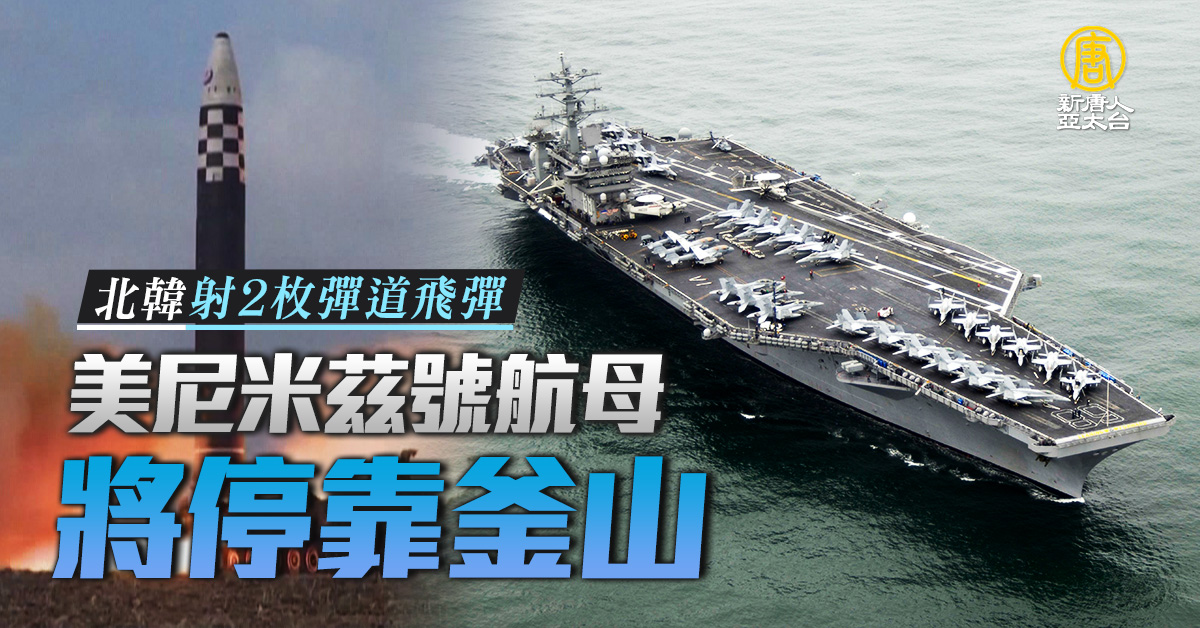 北韓射2枚彈道飛彈 美尼米茲號航母將停靠釜山