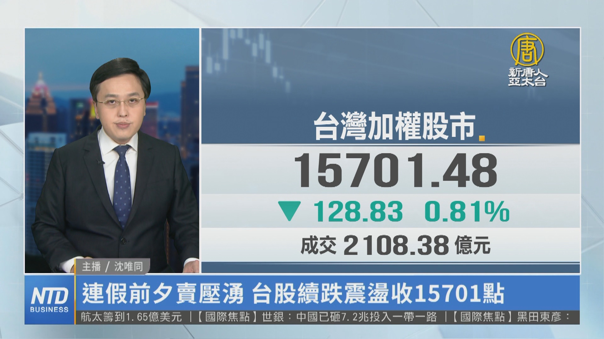 連假前夕賣壓湧 台股續跌震盪收15701點
