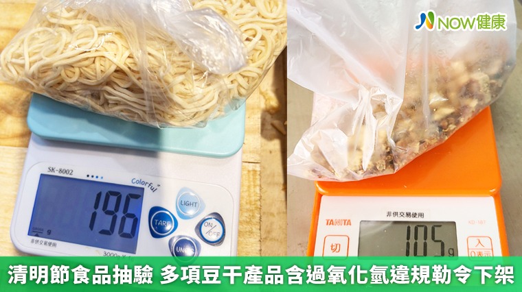 為保障民眾食用清明節食品之衛生安全,食藥署規劃「112年度節慶時令食品稽查抽驗專案-清明節」,執行期程為112年2月13日至3月31日,針對清明節祭祀食品加強抽驗,檢驗食品添加物、農藥殘留、動物性成分及食品衛生標準等項目,綜整地方政府衛生局截至112年3月22日回報結果,共計抽驗553件食品,結果551件符合規定,其餘2件豆干類產品檢出「過氧化氫陽性(標準:不得檢出)」,前述違規產品衛生機關均已令販售場所下架,並依法處辦。