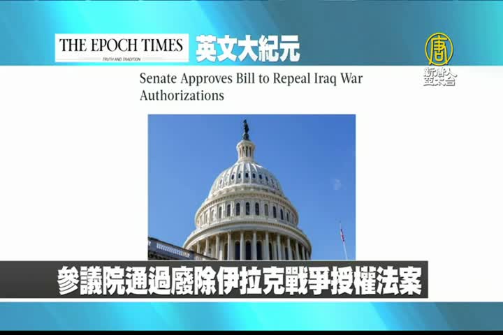 【新唐人亞太台 2023 年 03 月 30 日訊】首先來看到美國大紀元英文版報導:美國參議院29日通過法案,廢除伊拉克戰爭授權。
