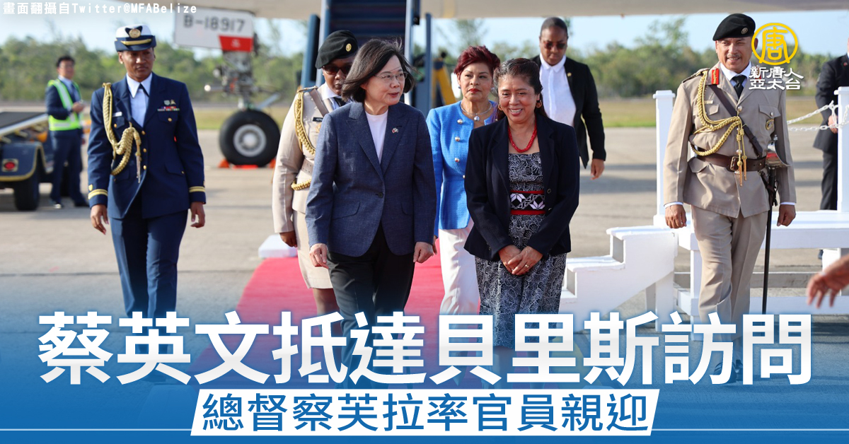 蔡英文抵達貝里斯訪問 總督察芙拉率官員親迎