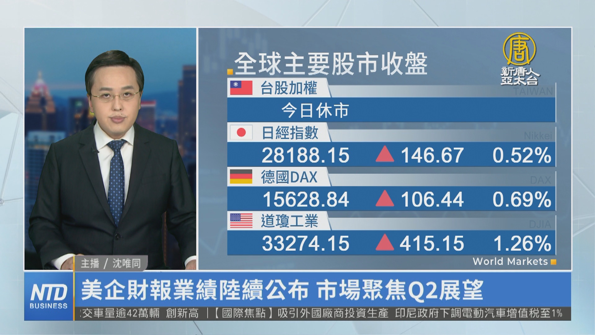 【新唐人亞太台 2023 年 04 月 03 日訊】美國三大指數,上周五以上漲走勢作收,美國指標企業公司財報,4月中陸續開跑,4月13日起將由貝萊德、富國銀行、摩根大通、花旗銀行等金融類股領先登場,另外20日開始,特斯拉打頭陣,陸續還有有德儀、Alphabet(Google)、微軟、Meta(臉書)、高通、蘋果、英特爾、亞馬遜等公司財報陸續端出。市場聚焦美國企業上季營運數據,將決定美股第二季市場走向。台股部分,適逢清明節連續假期休市到周三,另外陸股、港股也會在5日休市。