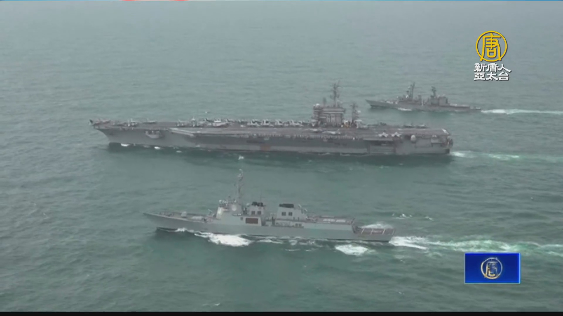 【新唐人亞太台 2023 年 04 月 05 日訊】美日韓三國週一起,在東海海域舉行為期兩天的反潛演習,包含美軍的「尼米茲號」航空母艦在內,三方一共出動了8艘軍艦。同一時間,中共軍艦也同樣動作頻頻,在日本周邊的海域出沒。日本防衛省指出,共軍的一艘電子偵察船,週一穿越了津輕海峽,進入太平洋。同一天,還有兩艘軍艦穿過宮古海峽之後,進入太平洋。