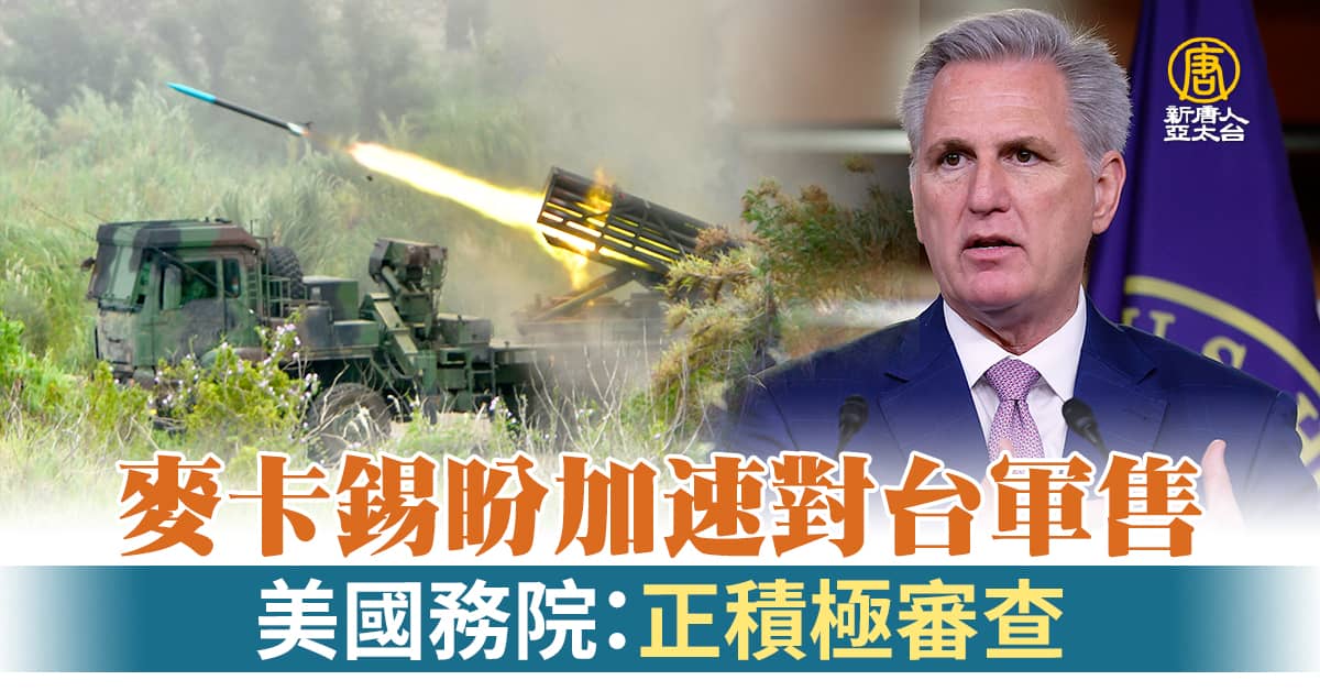 麥卡錫盼加速對台軍售 美國務院:正積極審查