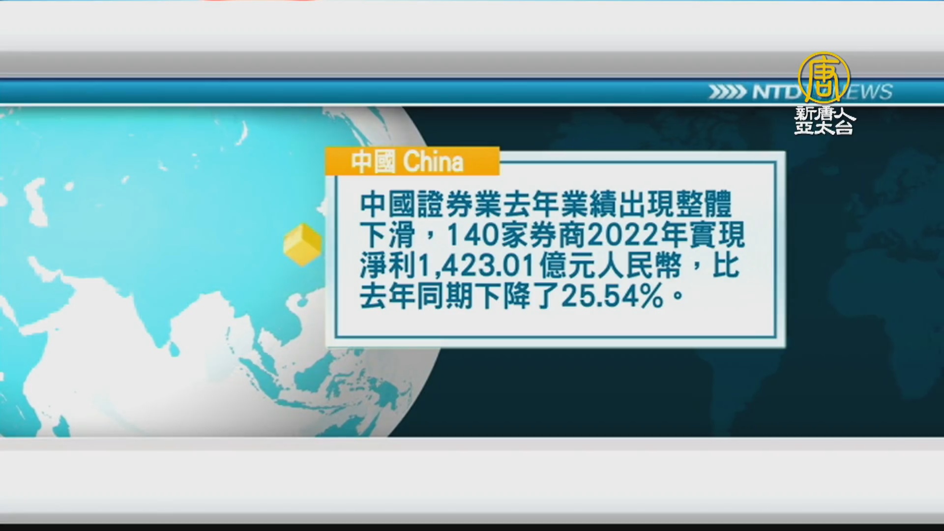 中國證券業去年業績出現整體下滑,140家券商2022年實現淨利1,423.01億元人民幣,比去年同期去年下降了25.54%。