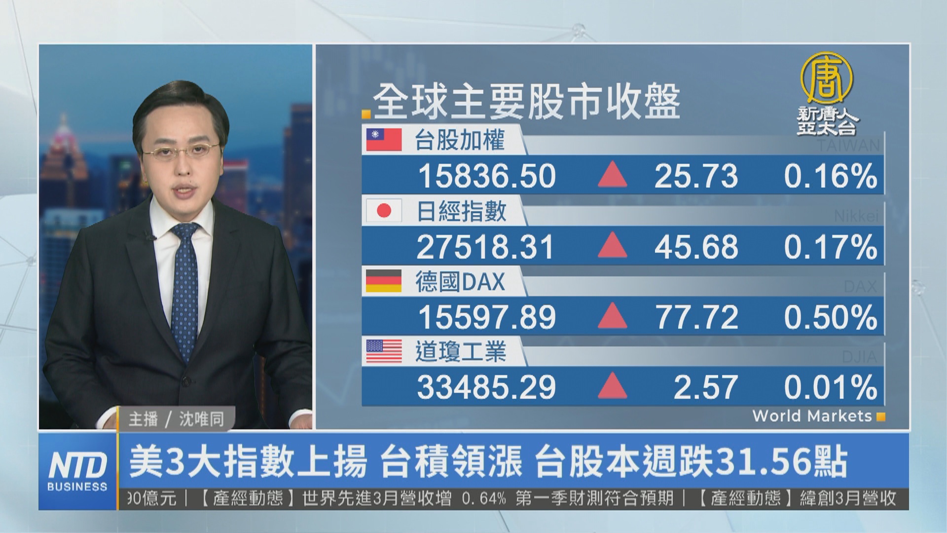 【新唐人亞太台 2023 年 04 月 07 日訊】美股3大指數週四全面上揚,受惠谷歌母公司Alphabet勁升,擔心經濟放緩的投資人,關注在週五發布的3月就業報告。道瓊工業指數微漲0.01%、那斯達克指數上漲0.76%。台股多頭今天(7日)追價力道有限,台積電帶頭領漲,電子、金融權值股漲跌互見,航運股相對強勢,加權指數終場上漲25.73點,收在15836.5點,成交值1756.47億元。台股週線連2黑,累計本週下跌31.56點。
