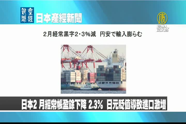 【新唐人亞太台 2023 年 04 月 11 日訊】來看到日本產經新聞報導:日本2月經常帳盈餘下降 2.3%,日元貶值導致進口激增。