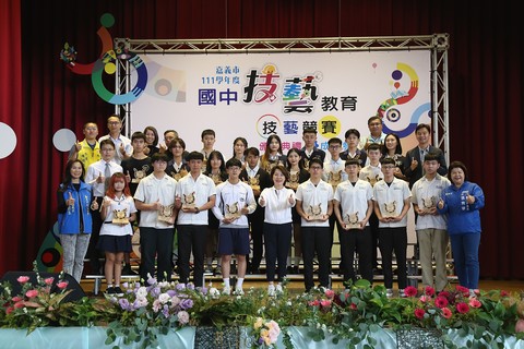 【新唐人亞太台 2023 年 04 月 13 日訊】嘉義市府為肯定及鼓勵技藝競賽成績優異學生,昨(12)日陳淑慧副市長代表市長黃敏惠前往北園國中活動中心,舉辦111學年度國中技藝教育技藝競賽頒獎典禮暨成果發表會,表揚今年「國中技藝競賽」獲獎學生182人及在全國高級中等學校技藝競賽表現優良的「金手獎」學生22人,合計204人。