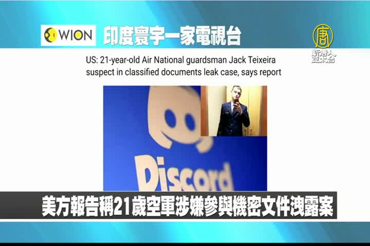【新唐人亞太台 2023 年 04 月 14 日訊】最後是印度寰宇一家電視台報導:一名21歲空軍國民警衛隊士兵,被確認為洩露美國政府機密文件的幕後黑手。