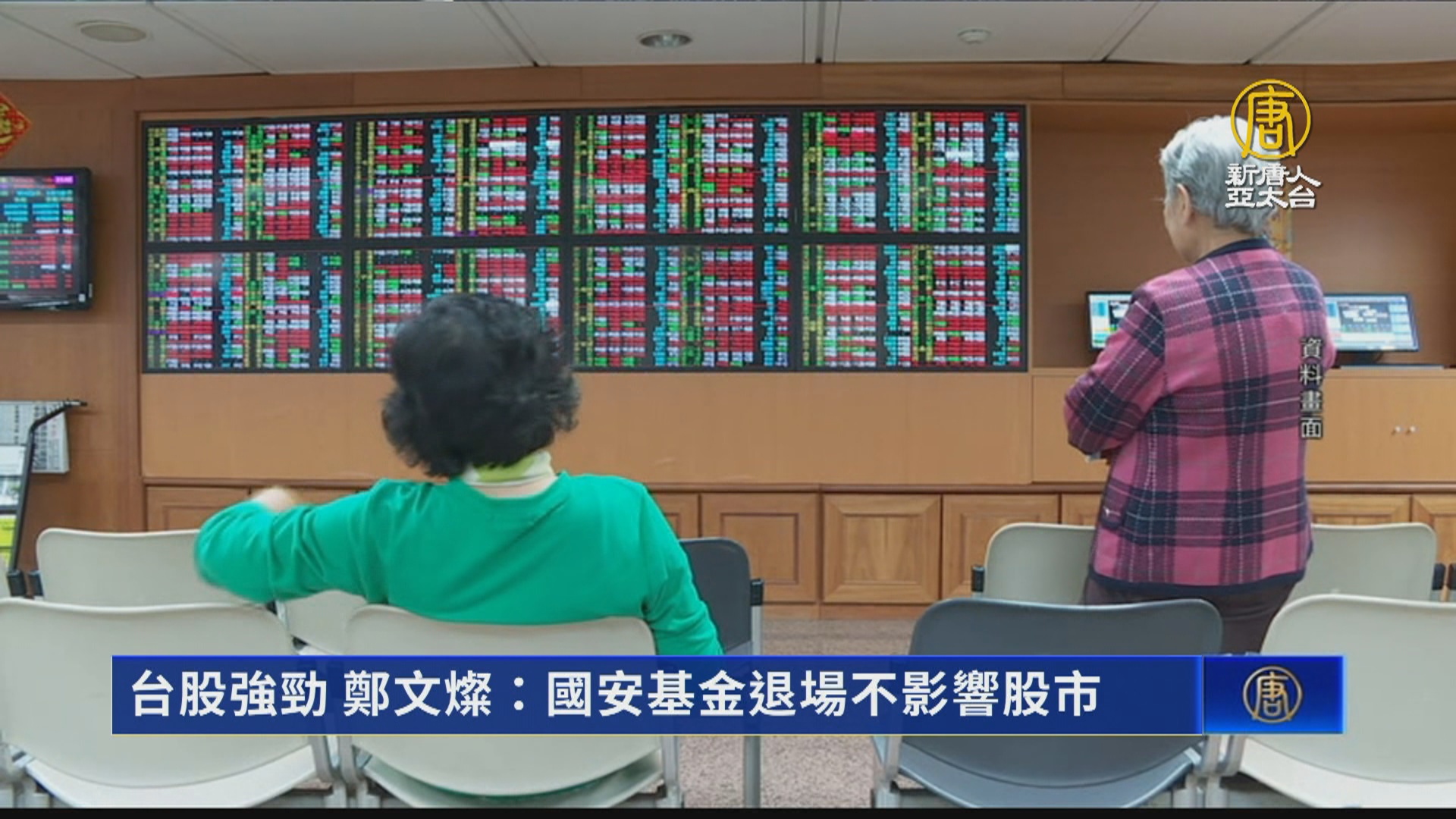【新唐人亞太台 2023 年 04 月 14 日訊】國安基金,13日宣布結束史上第8次的護盤行動,創下長達275天護盤天數。今天,台股強勁開高,一度漲超過百點至1萬5千908點,行政院副院長鄭文燦強調國安基金將無痛退場,不會造成市場衝擊。