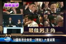 2013-04-14 21:23:48第32屆香港電影金像獎頒獎典禮,4月13日晚上在香港文化中心大劇院舉行。入圍12項大獎的《寒戰》一舉囊括最佳影片、最佳導演、最佳男主角等九項大獎,追平陳可辛導演的《甜蜜蜜》最高獲獎記錄。