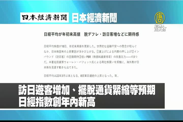 【新唐人亞太台 2023 年 04 月 19 日訊】來看到日本經濟新聞報導:訪日遊客增加、擺脫通貨緊縮等預期,日經指數創年初以來新高。