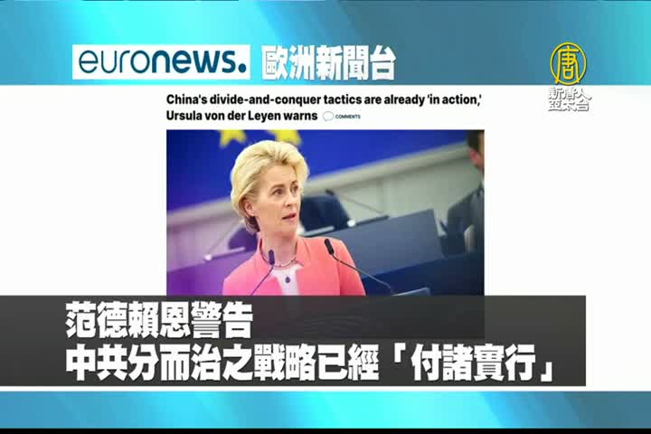 【新唐人亞太台 2023 年 04 月 19 日訊】來看到歐洲新聞台報導:歐盟執委會主席范德賴恩警告,中共分而治之戰略已經「付諸實行」。