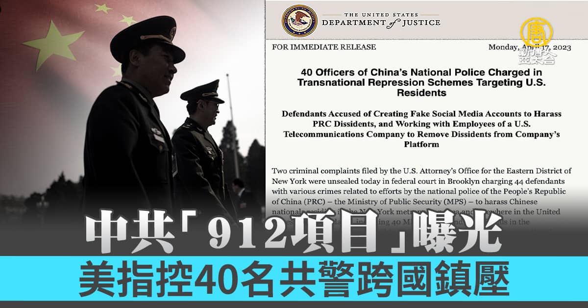 中共「912項目」曝光 美指控40名共警跨國鎮壓
