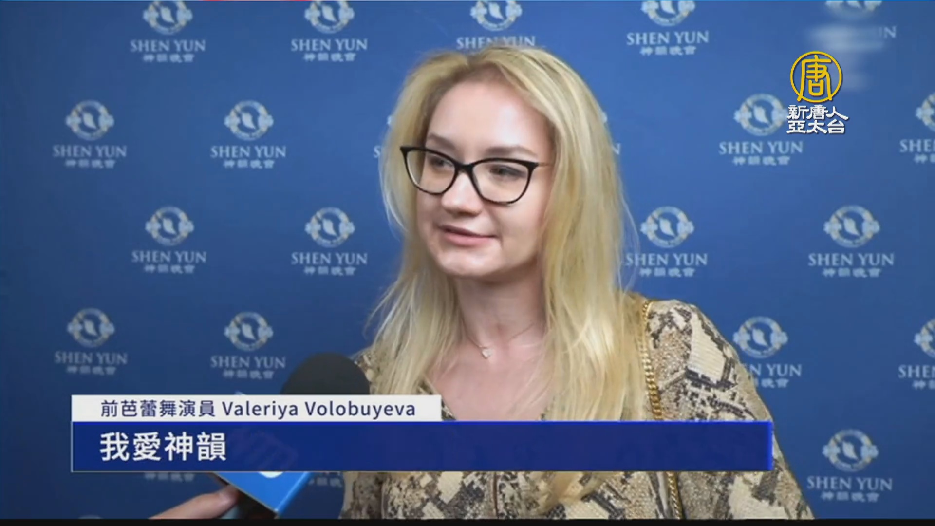 前芭蕾舞演員 Valeriya Volobuyeva:「神韻展示了文化的共通。 我曾生活在烏克蘭和俄羅斯,我可以在演出中找到文化的共通,我感到很親近。 我認為每個人,在每一件作品中,都能找到與他相通的東西。 我愛神韻。」