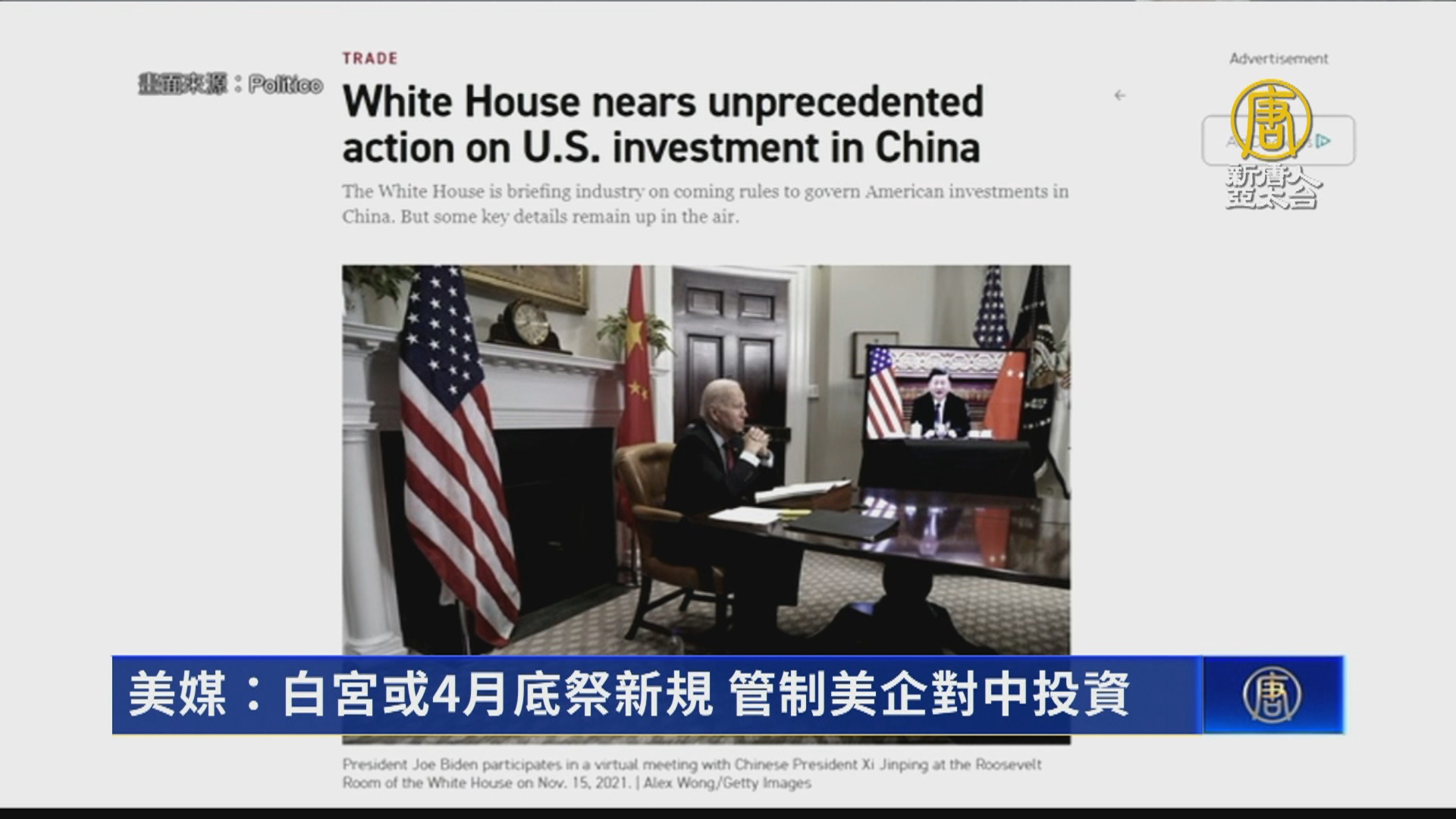 【新唐人亞太台 2023 年 04 月 19 日訊】再來看到,美國可能會在這個月底,出台新規定,對美國企業的在中投資,採取前所未有的行動。美國政治新聞網Politico報導,一名高階政府官員證實,最近幾週,拜登的經濟官員,已經向產業界,簡要介紹了這項規定。報導指出,預計這項行政命令將要求企業,在向中國科技公司做新的投資時,向政府通報,以及禁止在晶片等關鍵領域進行交易。報導指出,這項政策涵蓋的領域包括晶片、AI和量子計算等。命令還可能包括,禁止美國投資中國科技的內容。不過,目前仍有一些關鍵細節尚未敲定。