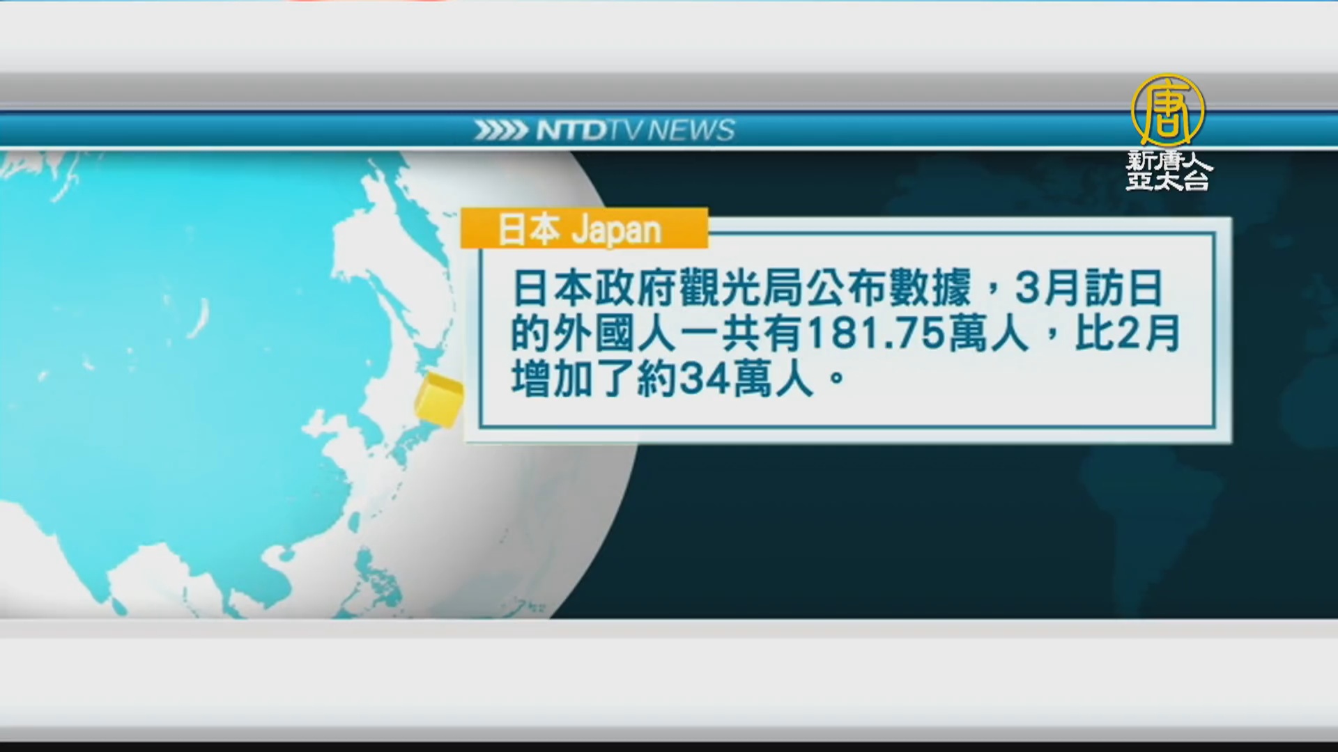 日本政府觀光局公布數據,3月訪日的外國人一共有181.75萬人,比2月增加了約34萬人。