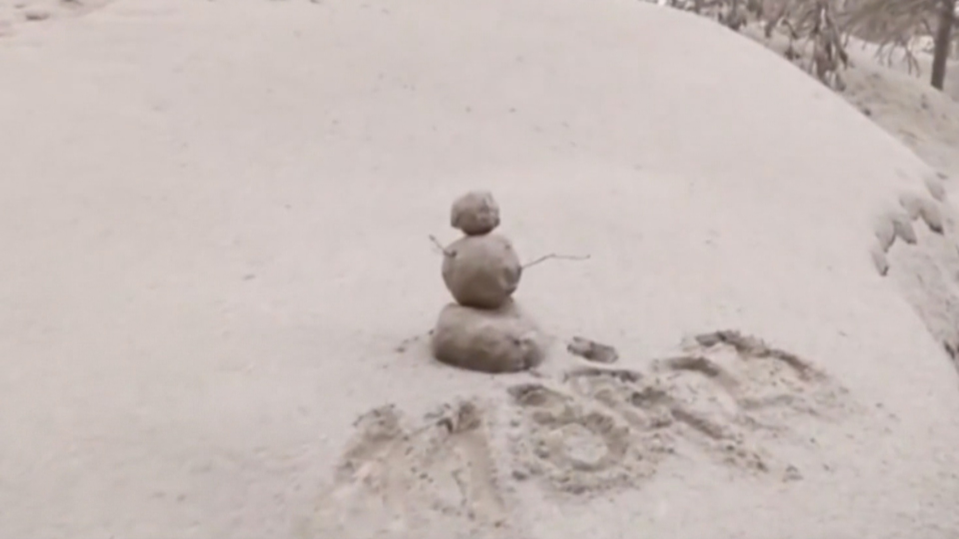 還有人饒有興致地堆起了「火山灰人」。