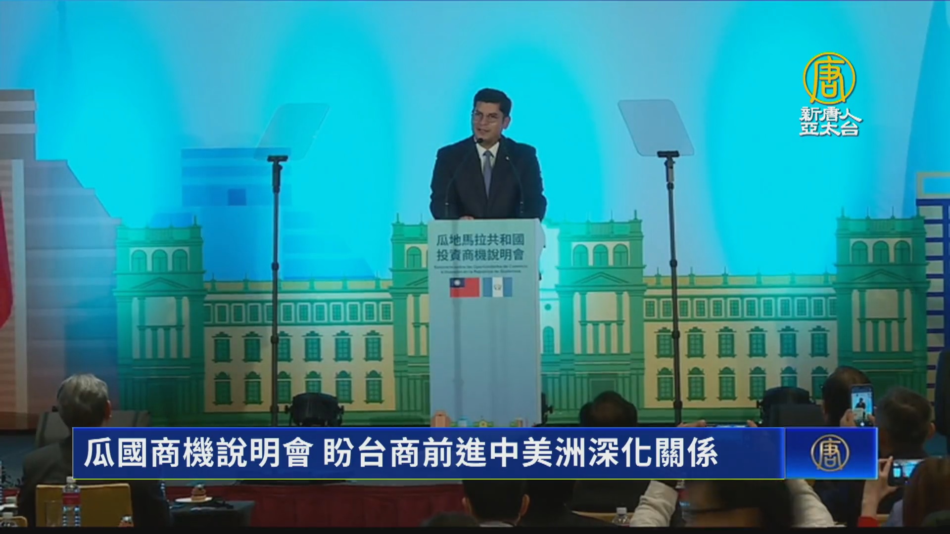 【新唐人亞太台 2023 年 04 月 24 日訊】瓜地馬拉總統賈麥岱率領財經部會首長官員,來台進行訪問,台灣外貿協會今天舉行瓜地馬拉投資商機說明會,以促進雙方深化經貿關係。