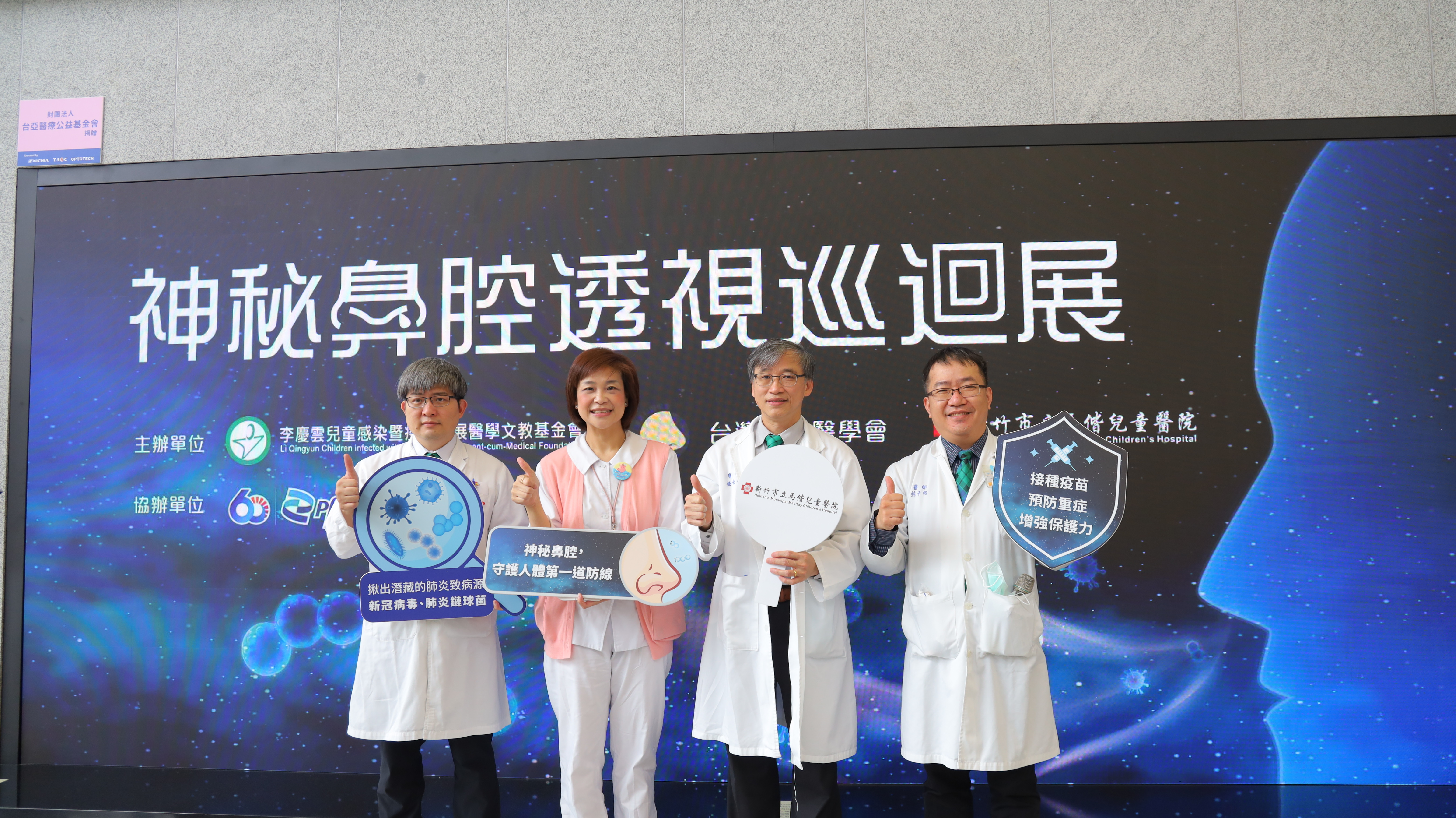 神秘鼻腔透視巡迴展新竹場在新竹市立馬偕兒童醫院登場,本次巡迴展醫院特別邀請幼兒園學童參加衛教講座,醫師們透過互動式有獎徵答,寓教於樂的方式,幫助孩子們更加了解鼻腔的構造和病菌以及疫苗接種的觀念。(新竹市立馬偕兒童醫院提供)