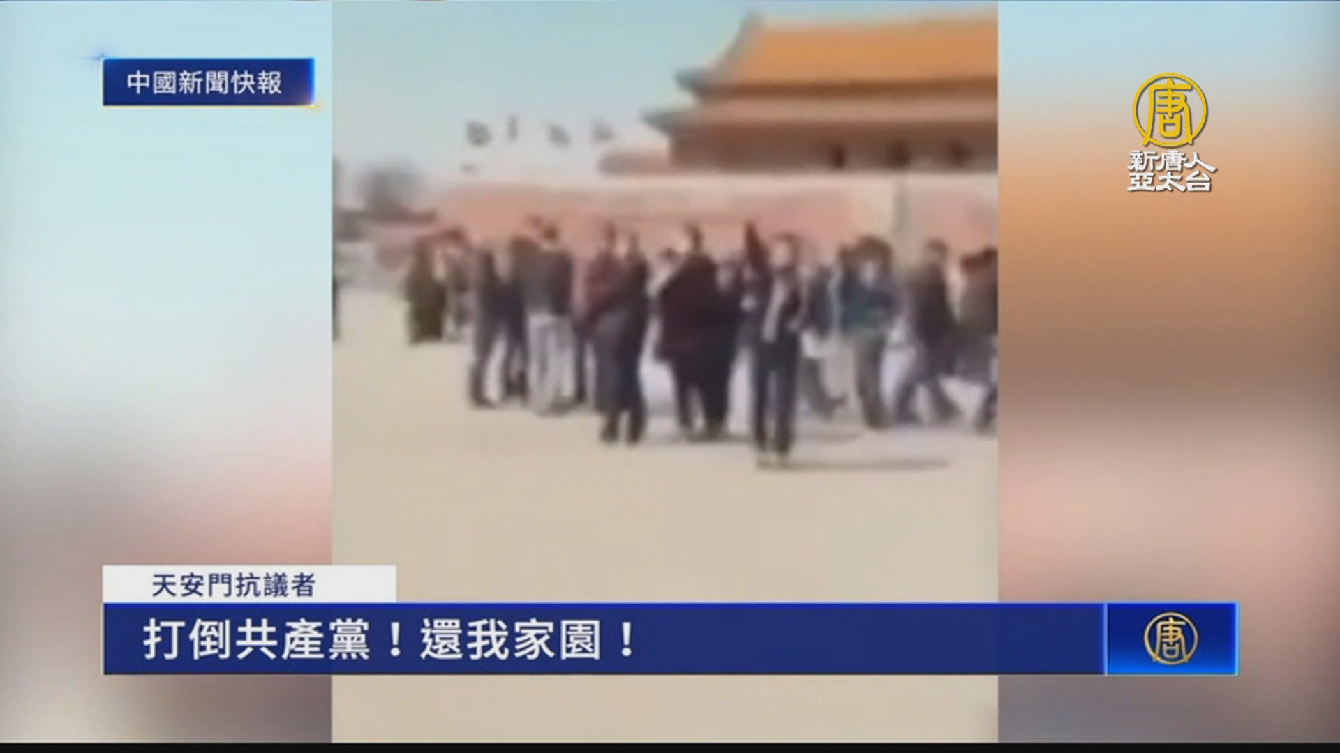 天安門抗議者:「打倒共產黨!還我家園!打倒共產黨!還我家園!」