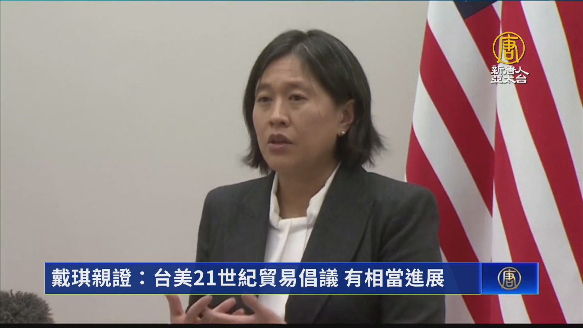 2023-12-08 20:03:41台美貿易倡議第二階段談判,美國貿易代表戴琪出席活動時表示,進展非常好。她表示,在當前國際局勢變動下,與台灣簽署的協議,是為夥伴量身打造。