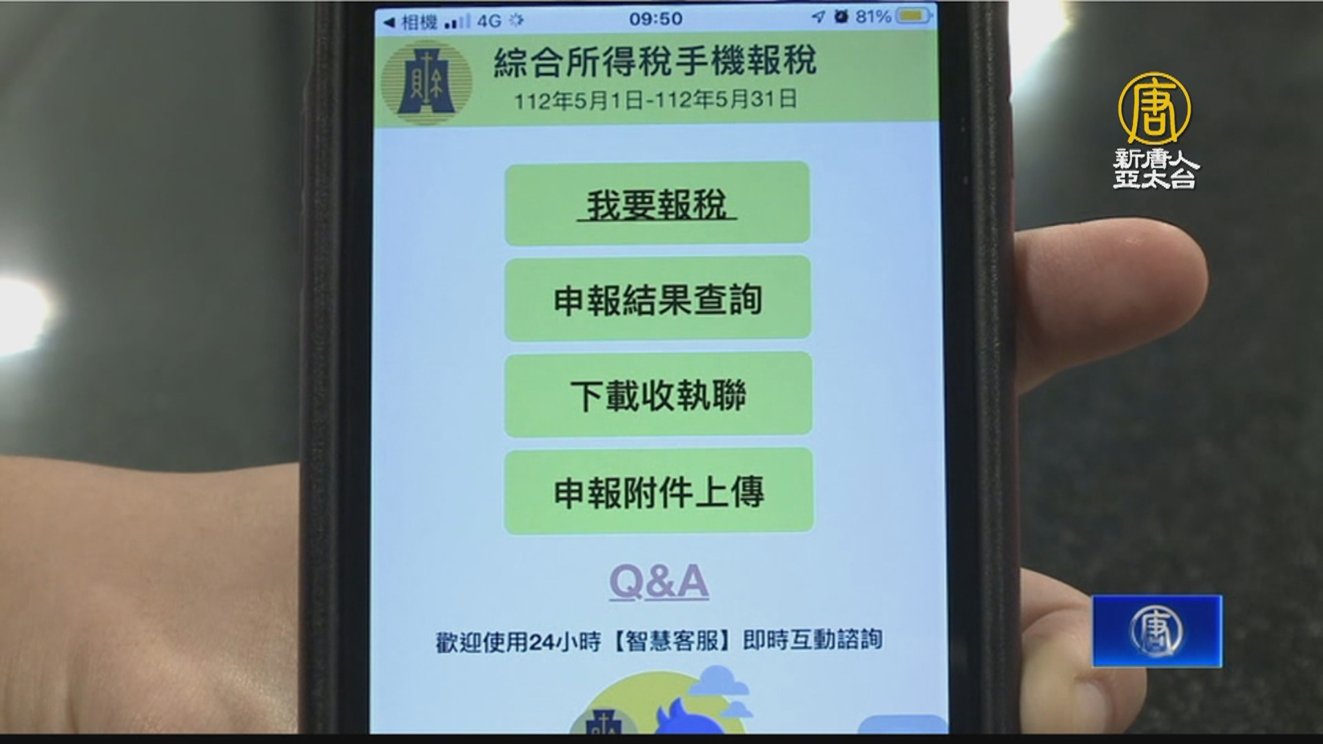 【新唐人亞太台 2023 年 05 月 01 日訊】今天是五月一日,也是綜所稅申報正式開跑,財政部表示,今年綜所稅新增八大利多,手機報稅3.0可以說更加方便,不僅可以選擇超商現金繳稅,不用再用紙本寄送證明文件,官員鼓勵民眾宅在家中報稅,不用到國稅局人擠人。