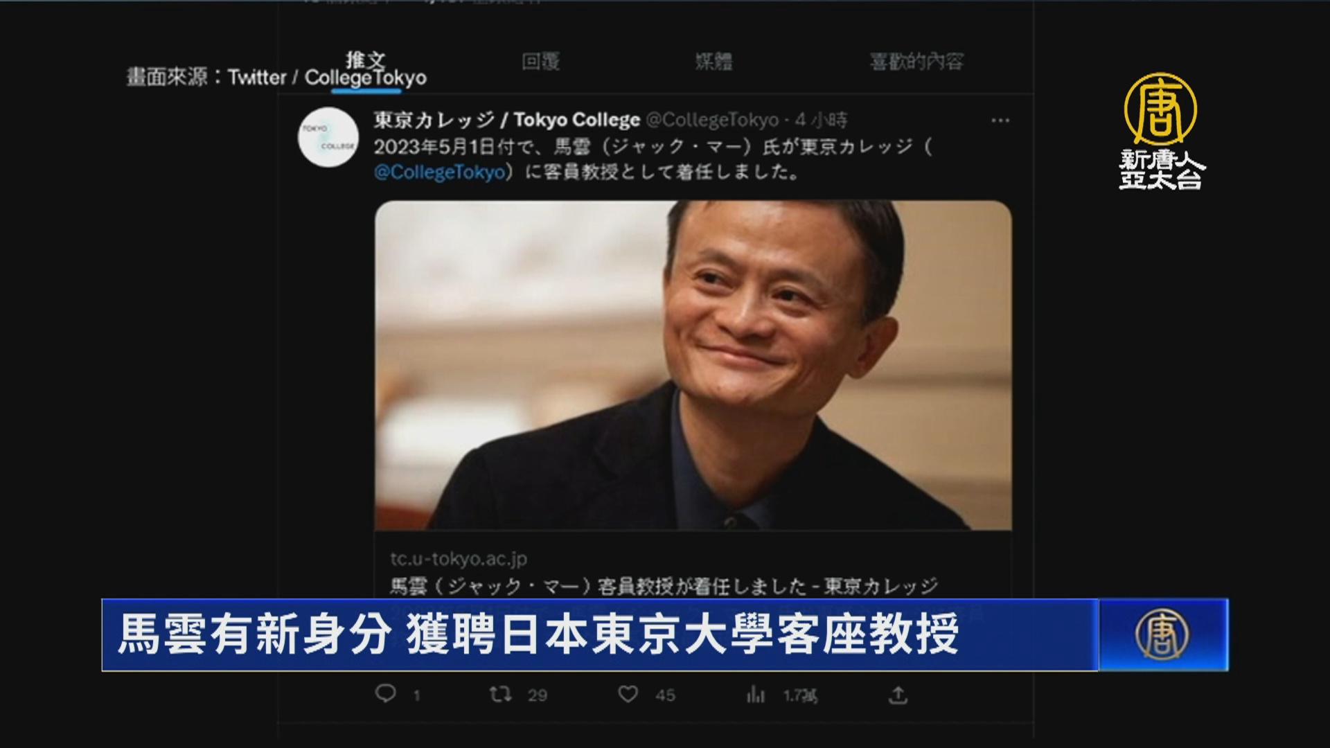 【新唐人亞太台 2023 年 05 月 01 日訊】再來看到,阿里巴巴創辦人馬雲將出任日本東京大學客座教授。外媒報導,日本東京大學週一宣布,已經聘請馬雲擔任研究組織「東京學院(Tokyo College)」的客座教授,任期截至10月底,合約每年可以續簽。馬雲將對重要研究課題,提供建議與指導,也會開辦講座分享創業相關知識。有分析指出,曾經擔任英語教師的馬雲重拾教鞭,似乎代表他的商業生涯可能正式落幕。