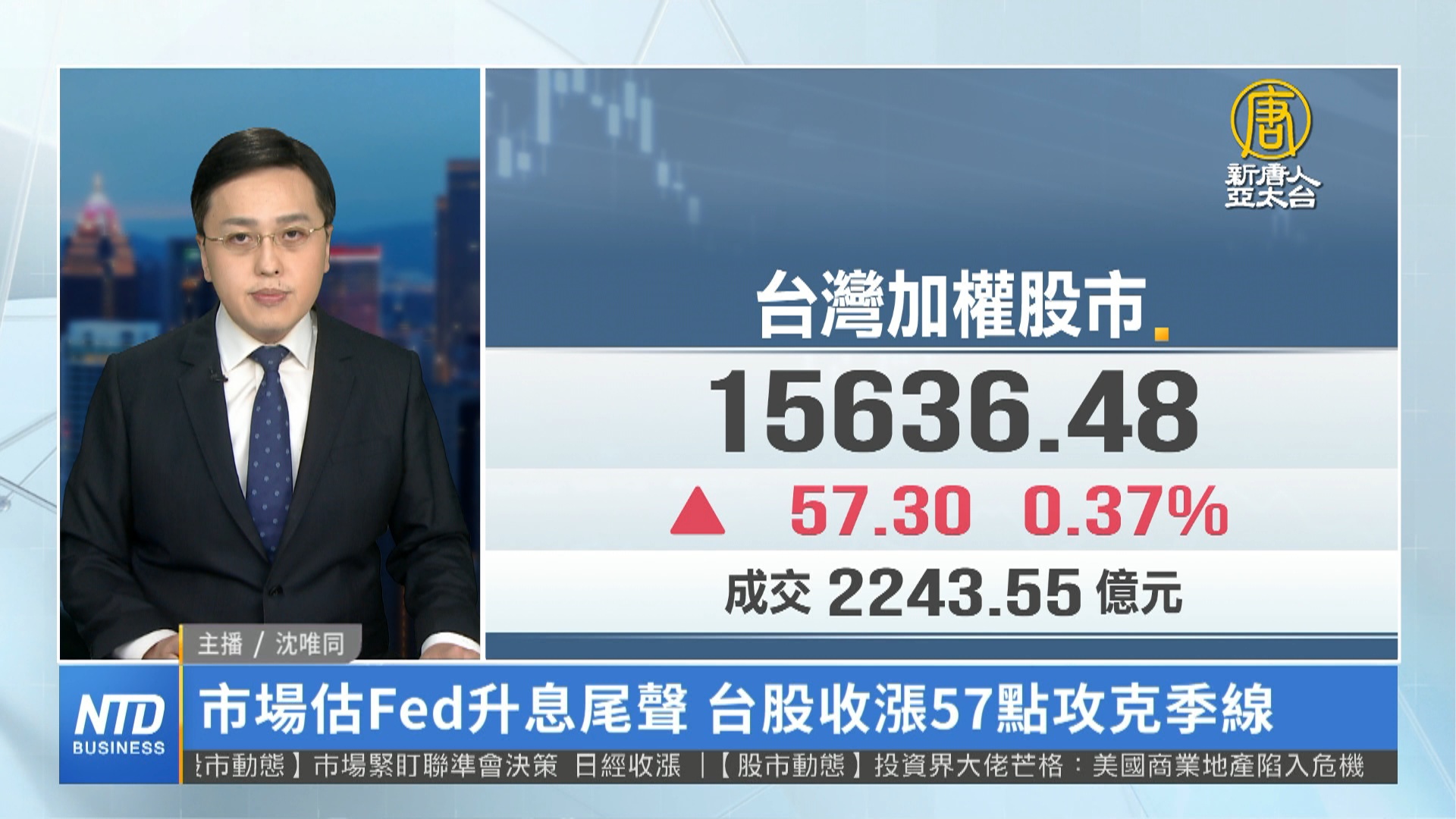【新唐人亞太台 2023 年 05 月 02 日訊】新聞一開始帶您看到國際股市,市場預期,美國聯準會5月升息幾乎成為定局,美國股市1日大多收黑,僅費城半導體指數上漲0.81%,美國銀行業出事,大增市場避險氛圍。台股方面,今天則是由中小型股、傳產股帶動,加上晶圓代工龍頭台積電站回500元大關,帶動加權指數攻克15600點關卡,一舉收復10日線與季線。法人認為,雖然科技產業近期雜音較大,不過如果聯準會,會後聲明轉向將停止升息,將有利台股資金回溫。