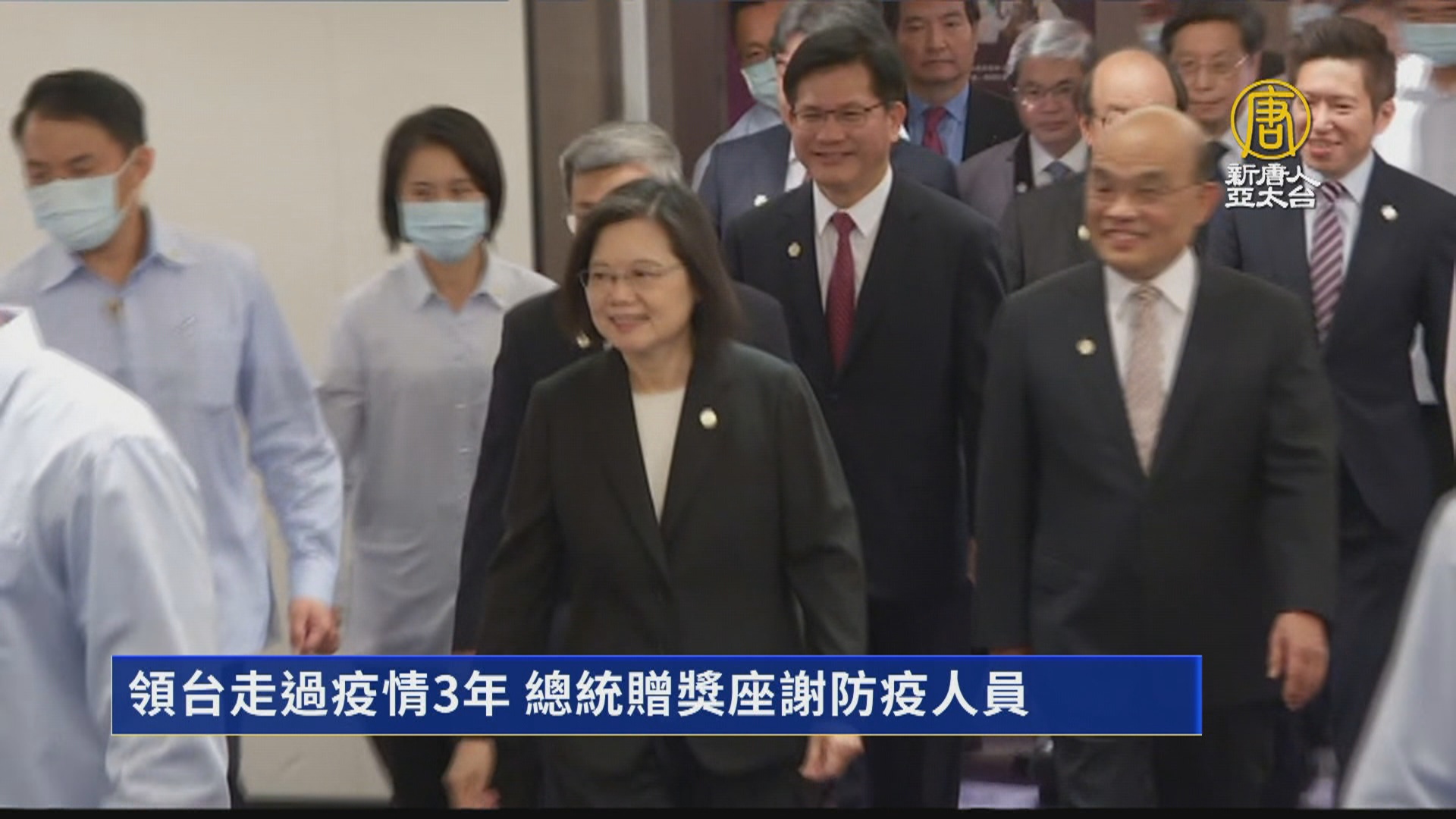 【新唐人亞太台 2023 年 05 月 02 日訊】歡迎回來。走過三年的疫情,台灣從三級警戒到口罩近乎全面鬆綁,指揮中心也在5月1號週一正式解編。而今晚,衛福部舉辦了捐贈感恩暨授獎表揚晚會。由總統蔡英文與行政院長陳建仁親自頒贈感謝獎座,給有功的防疫人員,以及在疫情期間捐贈物資的民眾,表達謝意。現場還有美國在台協會的代表以及日台交流協會代表泉裕泰等外賓出席致詞。