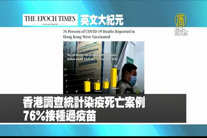 【新唐人亞太台 2023 年 05 月 03 日訊】首先來看到美國大紀元英文版報導:香港調查統計染疫死亡案例,有76%接種過COVID-19疫苗。