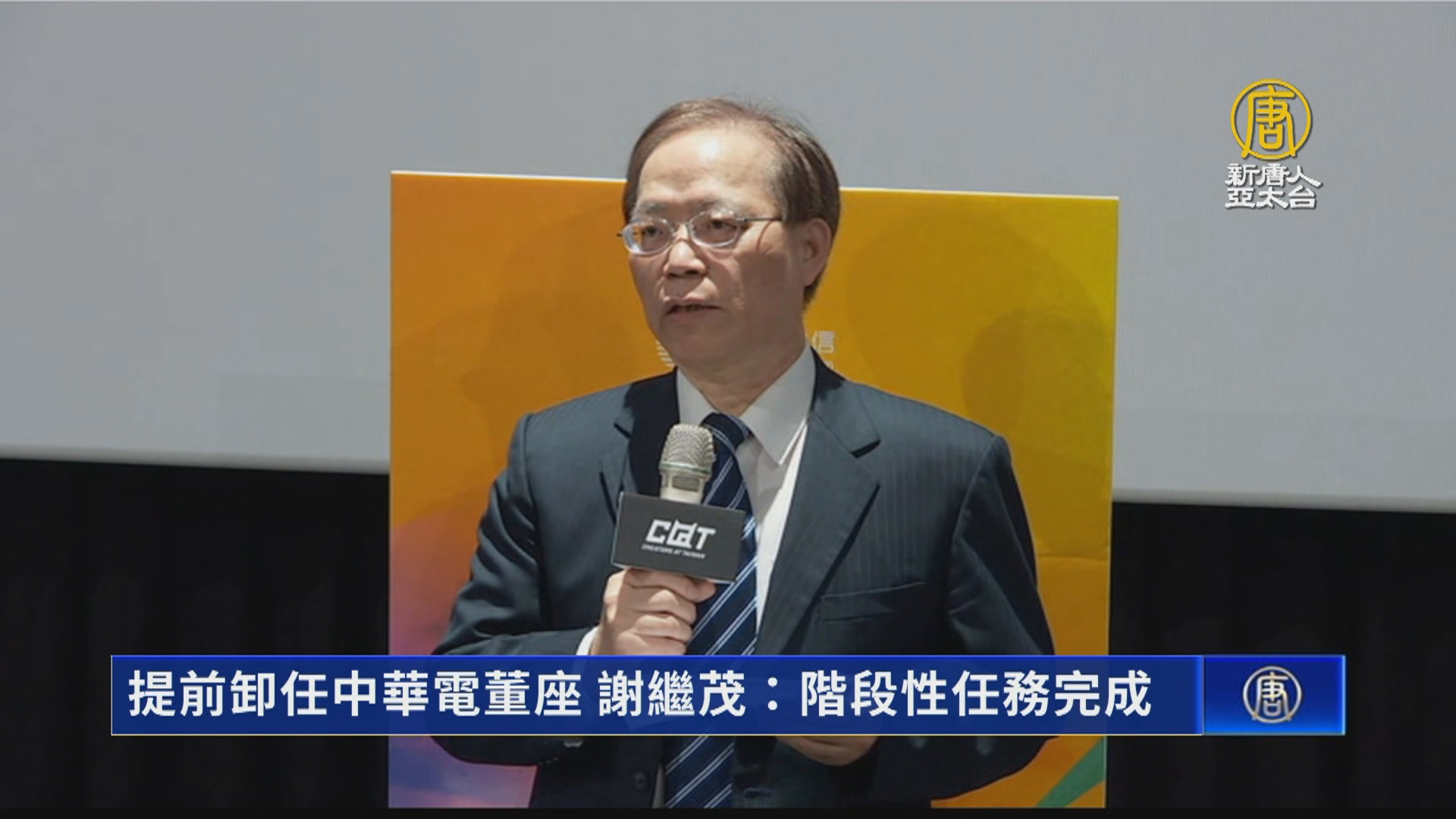【新唐人亞太台 2023 年 05 月 03 日訊】中華電信今天(3日)下午公告,大股東交通部解任法人董事代表,暨中華電信董事長謝繼茂職務。謝繼茂表示,階段性任務完成。謝繼茂任期從2025年5月26日,提前到今年5月5日。謝繼茂擁有台大商學所碩士,在中華電信服務超過40年。謝繼茂原計畫2019年從總經理職務申請退休,後來被時任行政院長的蘇貞昌拔擢為董事長。對於人事調動,中華電信將另舉行董事會,推舉新任董事長。日前市場盛傳,將由現任總經理郭水義接任。