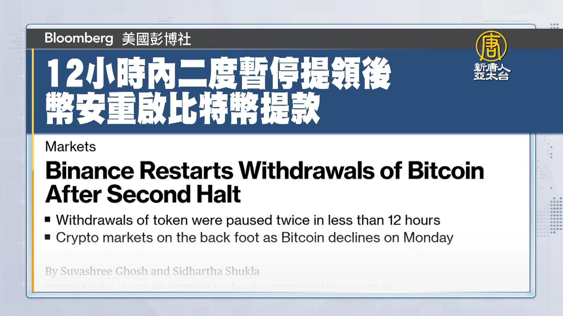 彭博社報導,幣安12個小時內二度暫停提領後,重啟比特幣提款。
