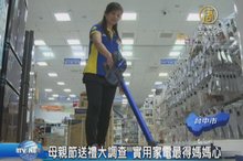 2016-05-08 20:12:08台灣有8成的民眾,會在母親節這天,與家人慶祝過節,也會準備母親節禮物,而根據一項調查,媽媽最喜歡收到的母親節禮物以實用性高的家電用品居冠,有業者就表示,家電用品業績成長了五成,而且無線吸塵器跟豆漿機的人氣最高。