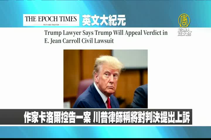 【新唐人亞太台 2023 年 05 月 10 日訊】首先來看到美國大紀元英文版報導:作家卡洛爾控告一案,川普律師稱,川普將對判決提出上訴。