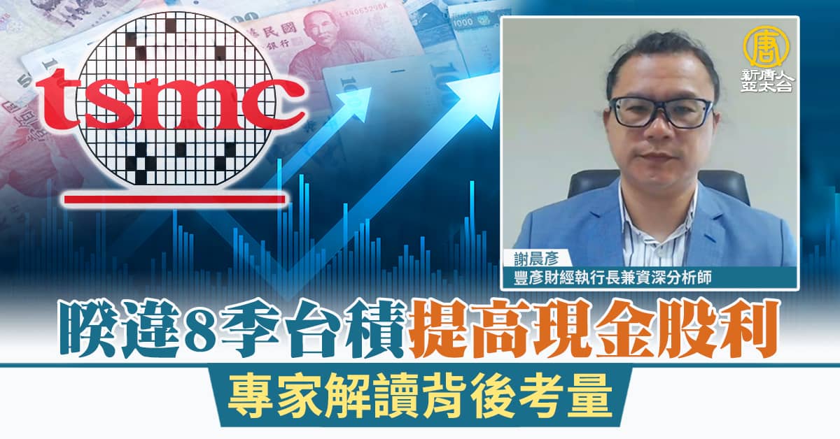 【新唐人亞太台 2023 年 05 月 10 日訊】台積電週二召開董事會,決議每股現金股利配發提高到3元,這是睽違8季後台積電再度調升股利。我們請教資深分析師謝晨彥,台積電選在這個時間點調高股利,依您的觀察,背後有哪些考量?這次董事會特別選擇在南科晶圓18廠舉行,國際董事也來台參加實體會議,您觀察後續有哪些動態,值得關注?