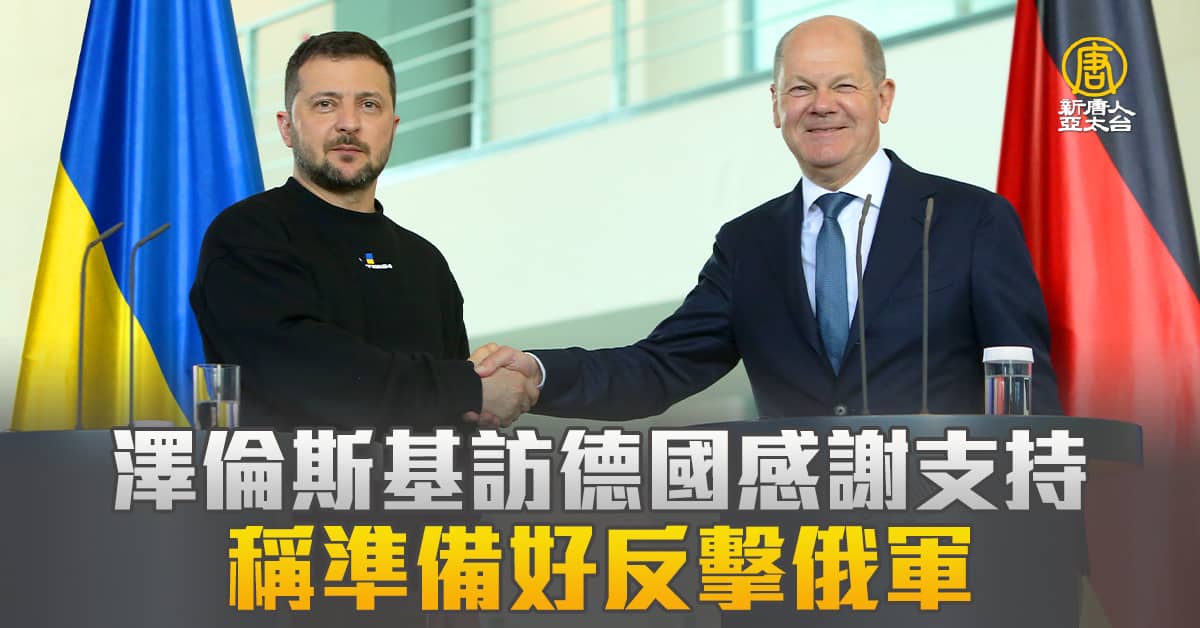 【新唐人亞太台 2023 年 05 月 15 日訊】關心烏俄局勢,烏克蘭總統澤倫斯基,星期天在柏林與德國領導人舉行會談,他感謝德國對烏克蘭的支持,並說準備好反擊俄軍。