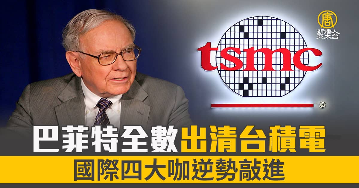 【新唐人亞太台 2023 年 05 月 16 日訊】美國知名投資家巴菲特),旗下投資公司波克夏,繼去年第4季大幅減持台積電86%後,在今年第1季正式出清台積電持股。巴菲特日前在波克夏年會表示,賣出台積電是因為擔憂兩岸地緣政治緊張情勢。不過仍有大型投資機構敲進台積電ADR股票,包括麥格理、富達投資、老虎基金及蔻圖基金等投資者。