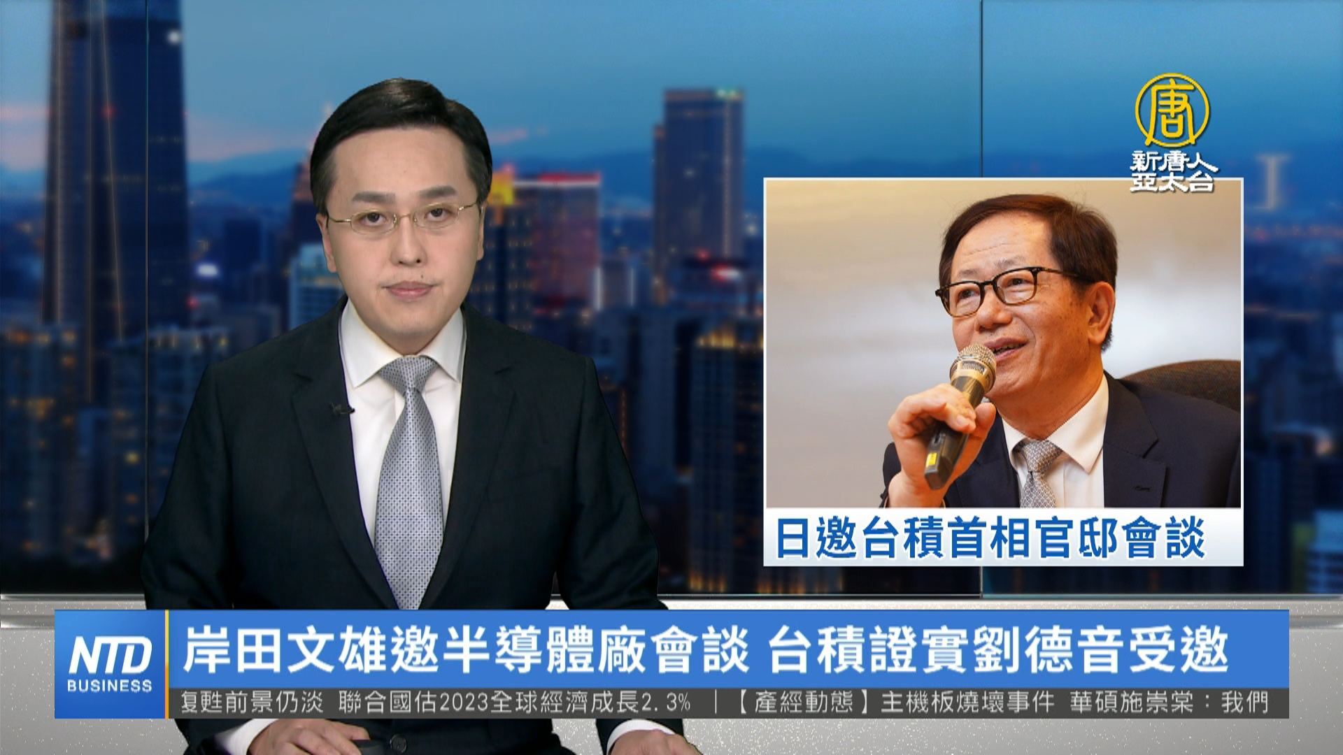【新唐人亞太台 2023 年 05 月 17 日訊】日本媒體報導,日本政府18日邀請台積電等半導體大廠董事長或執行長,赴日本首相官邸會談合作議題。對此,台積電今天(17日)證實董事長劉德音受邀參與明天(18日)在日本的會談。媒體報導指出,包括英特爾、IBM、美光、應用材料、三星等,將由董事長或執行長(CEO)等共7人與會。