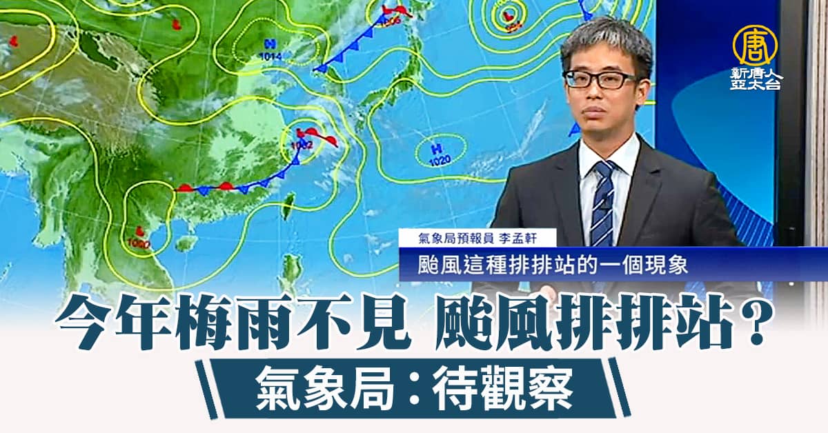 【新唐人亞太台 2023 年 05 月 18 日訊】今年梅雨季遲遲不來,美國氣象預測系統顯示,6月初台灣的梅雨不見了,反而換成「颱風排排站」!氣象專家彭啟明解讀,今年可能沒有典型梅雨鋒面,很快就會進入颱風季!不過氣象局說,這現象仍待觀察,反倒是明天各地都會轉為有雨!