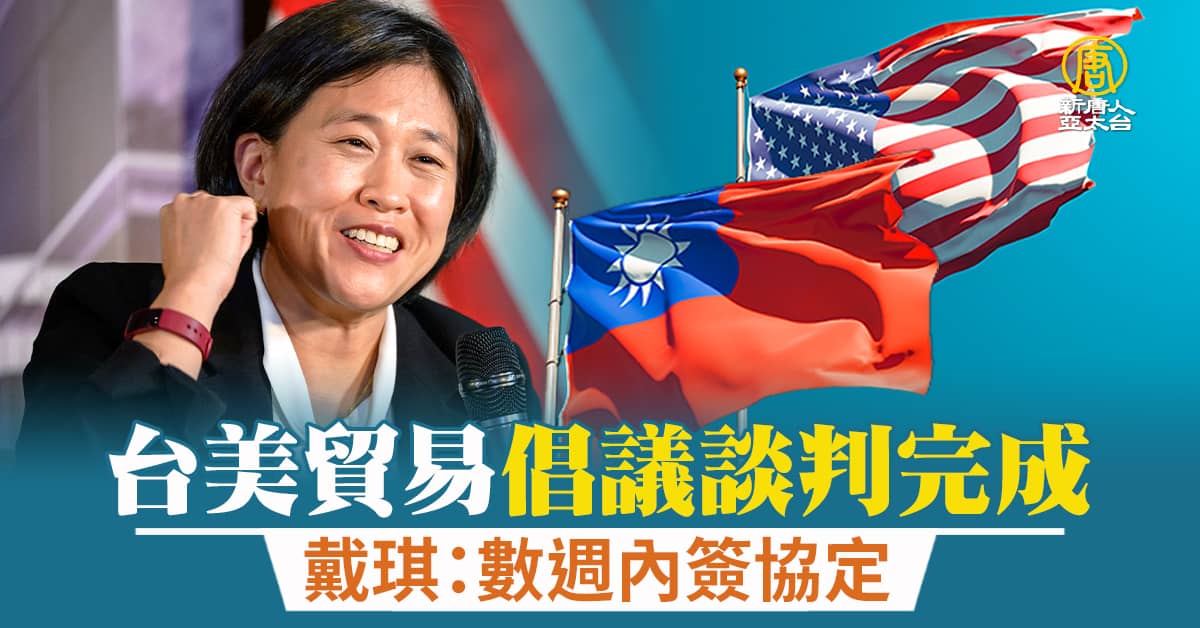 【新唐人亞太台 2023 年 05 月 19 日訊】再來看到,美國貿易代表戴琪今天宣布,台美21世紀貿易倡議已完成談判,是強化美台經濟關係的重要一步。雙方預計數週內將針對貿易便捷化、中小企業、反貪腐等5項議題,簽署首批協定。台美去年6月1日啟動21世紀貿易倡議,囊括12項議題,至今已經舉行兩回合談判。