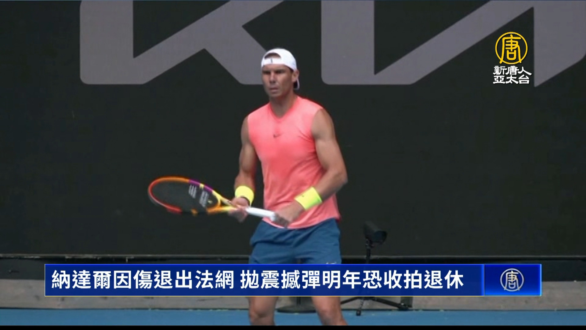 【新唐人亞太台 2023 年 05 月 19 日訊】拿下22座大滿貫冠軍的西班牙網球名將納達爾,在法國網球公開賽開打前,宣布因腿傷退出本屆賽事,而且今年都不會再參加比賽,7月的溫網也將缺席。納達爾說,因為年初在澳網的傷勢恢復不如預期,退出比賽是很困難的決定,同時他也預告明年就可能是他最後一個賽季。