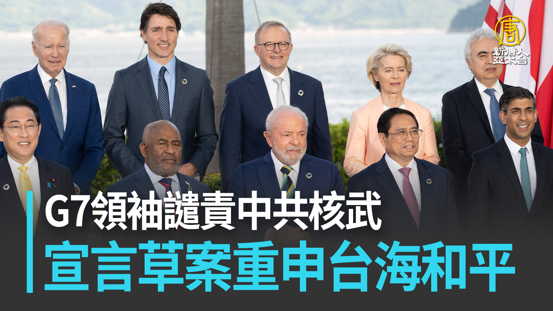 【新唐人亞太台 2023 年 05 月 20 日訊】在廣島召開的G7峰會發表《廣島願景》,呼籲世界各國提高核武的透明度,並譴責中共對於核武的快速擴張。外媒也透露了七國領袖宣言草案,除了再次強調台海和平穩定的重要性,還有多項針對中共的內容。