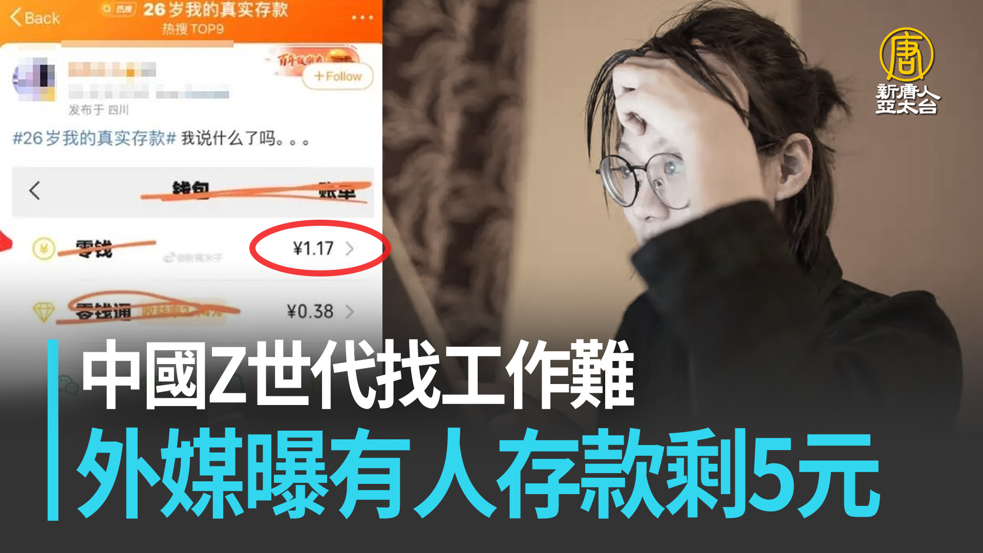 中國Z世代找工作難 外媒曝有人存款剩5元