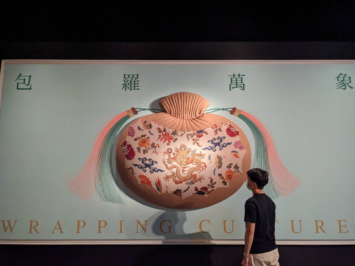 賴芷儀表示,織品除包覆、辨識,也常被賦予除災護佑的功能;這次展出「日本白地經文衣」為日本佛教「四國遍路」的朝聖者,沿途穿著並蓋上朝拜寺院的朱印、尊像或梵字墨印的白衣,因具有庇護能量,常被用來孝敬尊長或為亡者祈福。「包袱」與「包福」諧音,吉祥寓意也展現在清宮器物的裝飾上。從雍正皇帝開始就有包袱紋飾的器物作品,這次展出〈清乾隆銅胎畫琺瑯包袱紋蓋罐〉及〈清嘉慶粉彩番蓮紋包袱式瓶〉包巾繫結的紋飾優雅清新,令人賞心悅目。