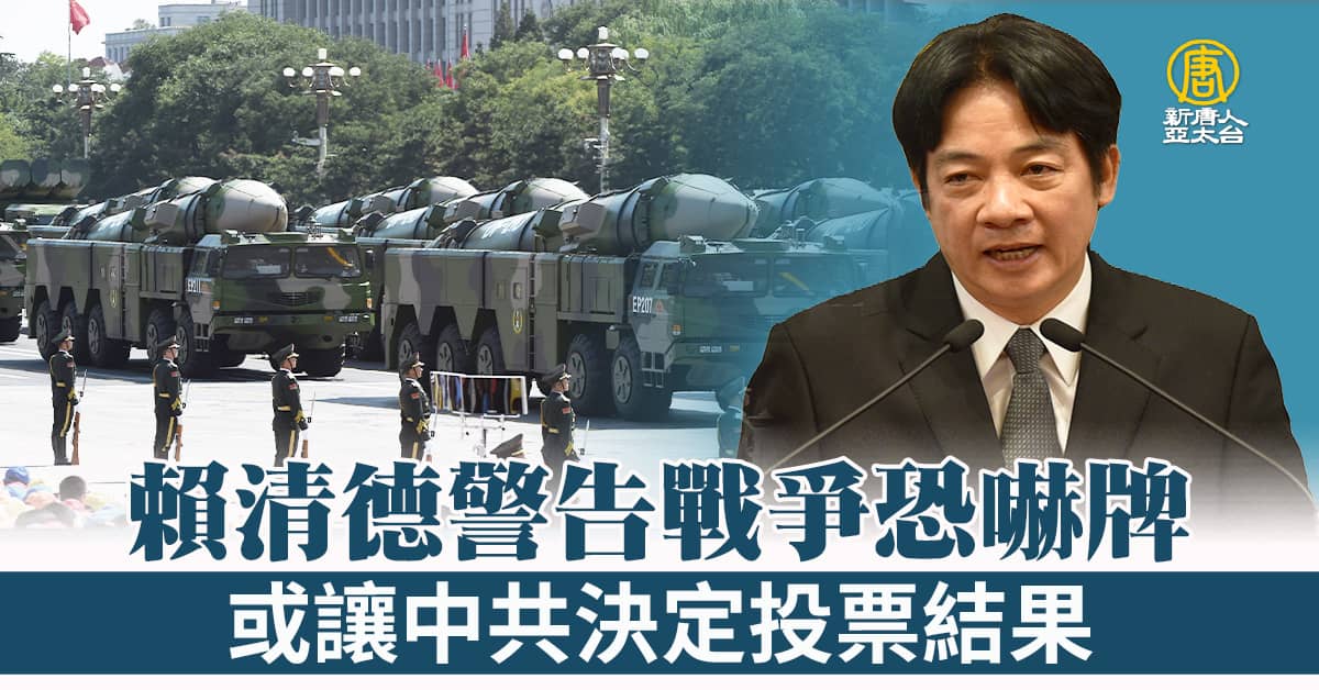 賴清德警告戰爭恐嚇牌 或讓中共決定投票結果